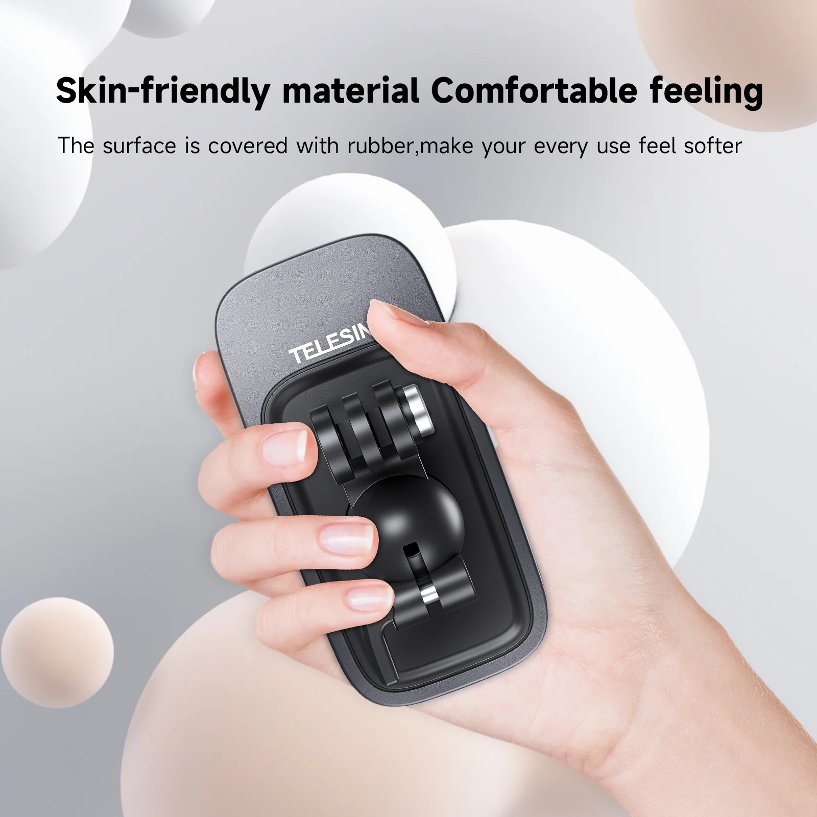 Fabricado en ABS de alta calidad, el clip incorpora múltiples filas de dientes y resortes reforzados que garantizan una sujeción segura en correas de mochilas y bolsos. Ideal como soporte POV para selfies y grabación en movimiento.