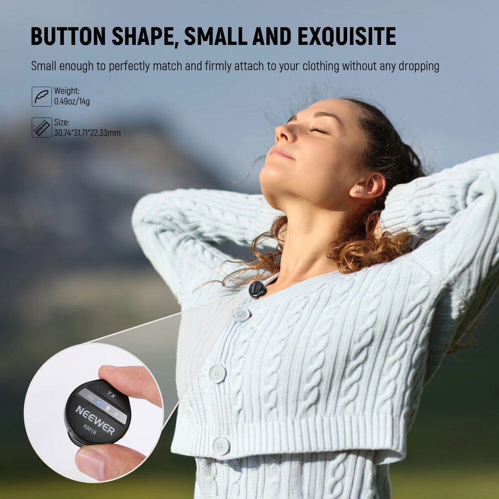 Este sistema de micrófonos inalámbricos tipo botón destaca por su diseño minimalista y ligero, con transmisores de solo 14 g que se integran discretamente a cualquier vestimenta. Graba en calidad 48 kHz/24 bits para capturar cada detalle con claridad y profundidad, ofreciendo una relación señal/ruido de 78 dB y soportando hasta 115 dB de presión sonora, ideal incluso en entornos exigentes. Incluye función de silencio con un solo clic para mayor control durante la grabación.