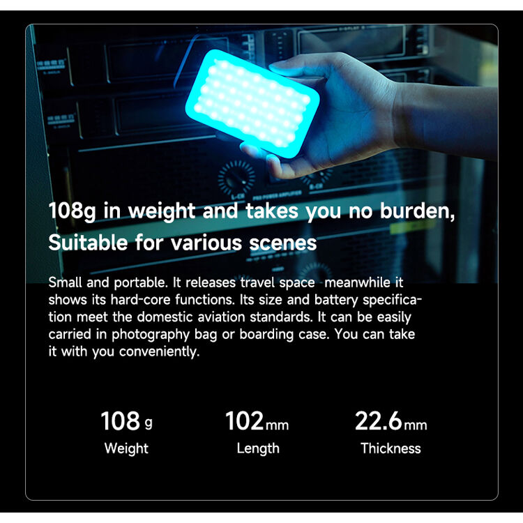 Es compatible con la aplicación WeeyLite Pro, desde donde podés controlar de forma remota el color, el brillo y los efectos directamente desde tu smartphone. Su diseño ultracompacto y ligero, con un peso de apenas 108 g, permite llevarla cómodamente en el bolsillo o integrarla fácilmente en cualquier setup portátil.
