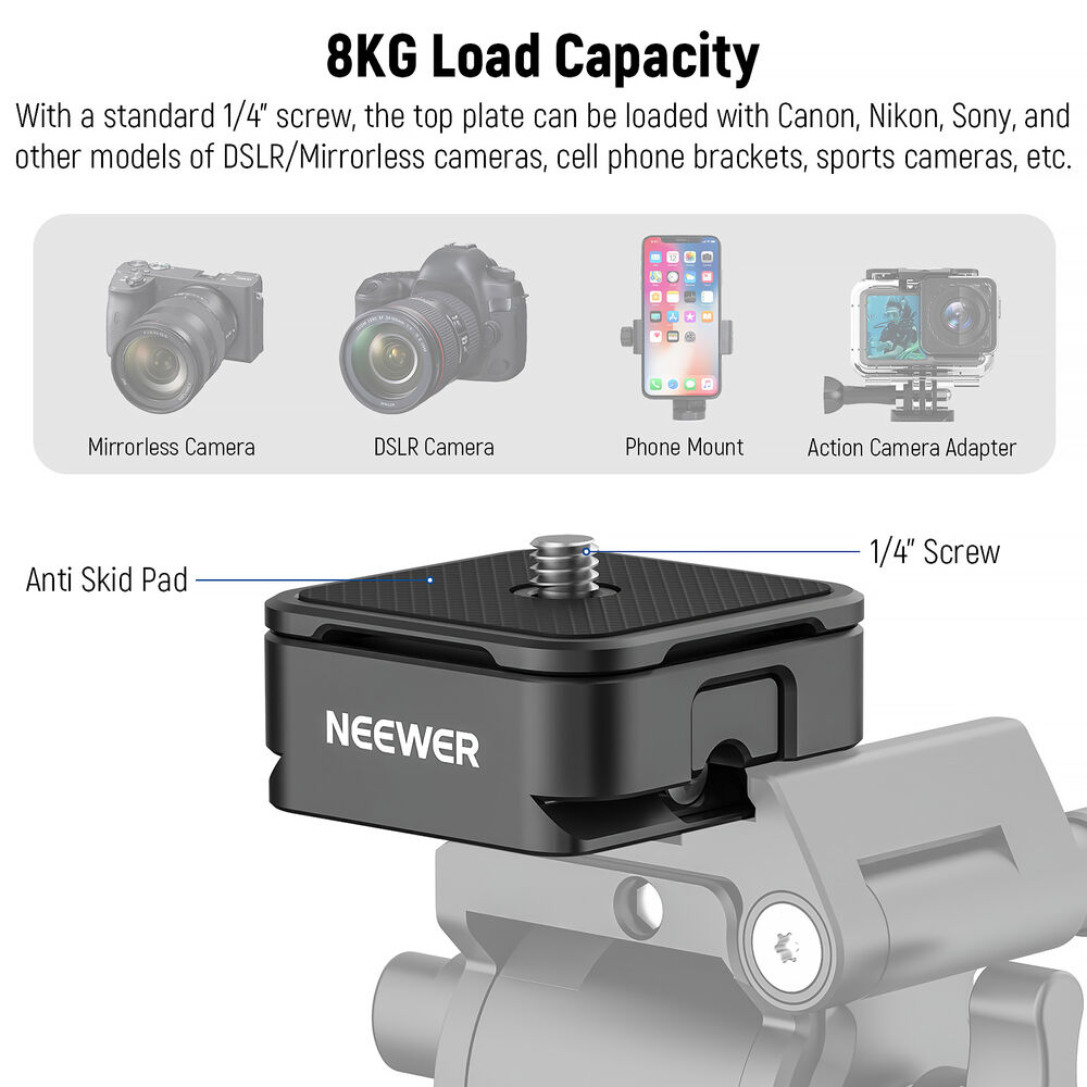 Diseñado para creadores que no se detienen, este sistema de liberación rápida transforma tu flujo de trabajo con cambios instantáneos, montaje seguro y total libertad entre trípode, gimbal o slider. Menos ajustes, más creación.
