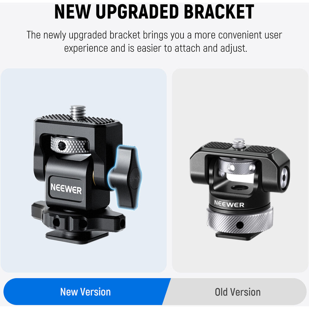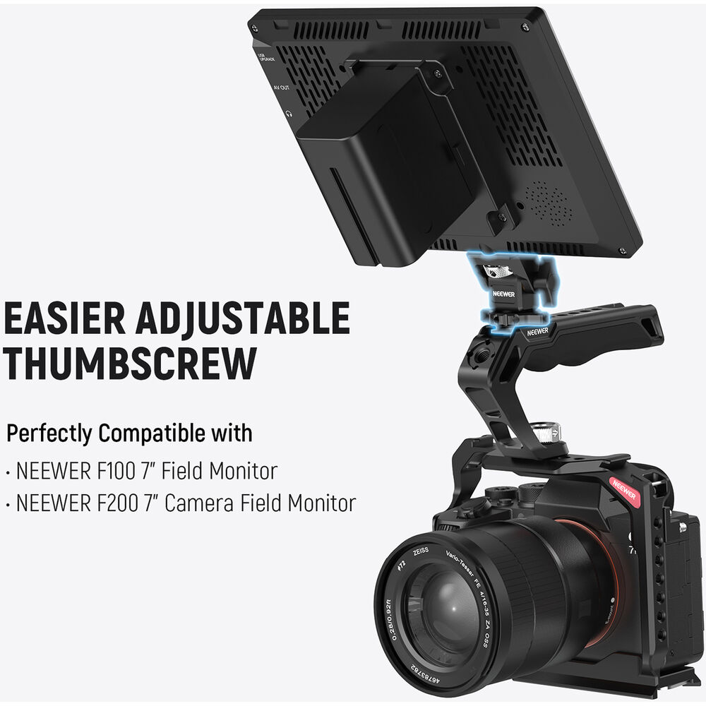 El tornillo estándar de 1/4” es compatible con cualquier monitor de 5” a 7” que utilice esta rosca, incluyendo Atomos Ninja V y Ninja V+, así como monitores NEEWER F100, F200, F400 PRO y F500. Incluye tornillo manual y llave hexagonal en forma de L para un ajuste más firme.