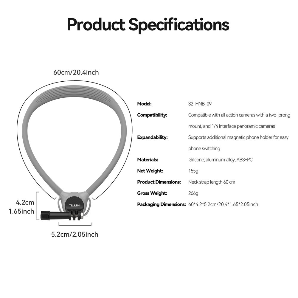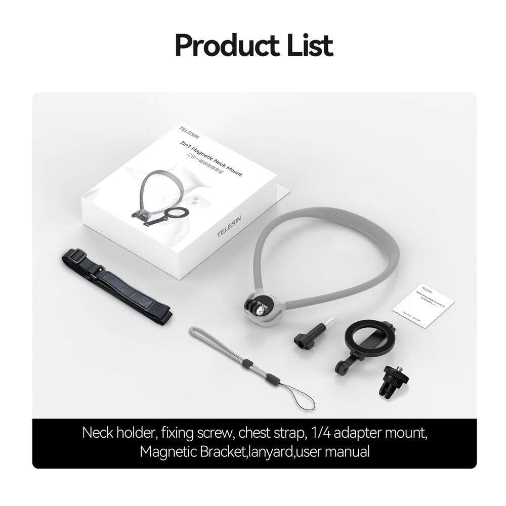 Es compatible con cámaras de acción populares como GoPro, DJI e Insta360 mediante monturas estándar, así como con smartphones si se utiliza el soporte magnético adicional. También se integra con otros accesorios TELESIN como palos selfie o trípodes, convirtiéndose en una solución POV corporal que complementa cualquier kit de grabación existente.