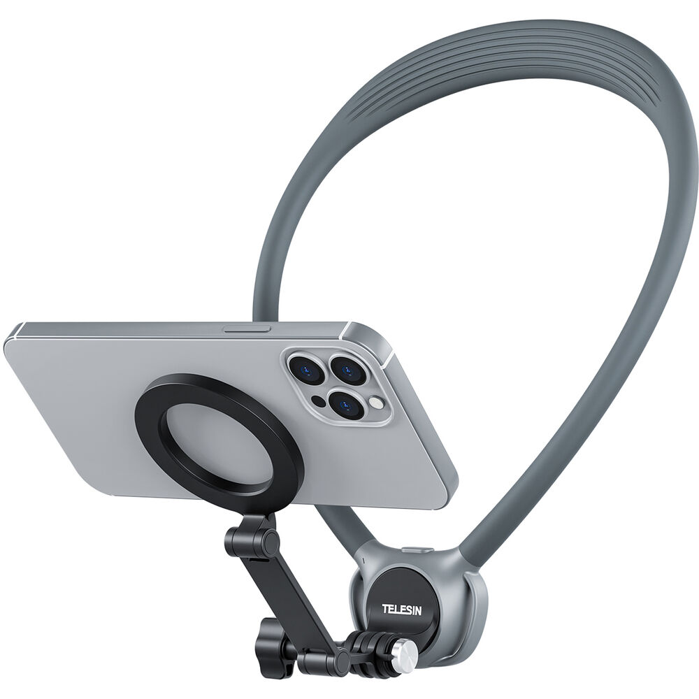 Con el accesorio magnético opcional, el soporte se convierte también en una montura para teléfono. El sistema magnético permite colocar y retirar el celular en segundos, ideal para grabar, responder llamadas o cambiar a grabación en mano rápidamente. Consulta las opciones de kit para confirmar si el soporte magnético viene incluido.